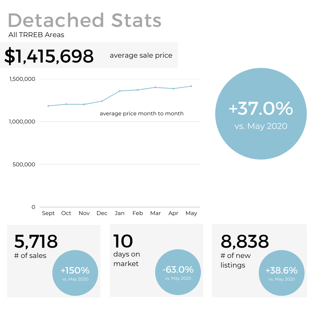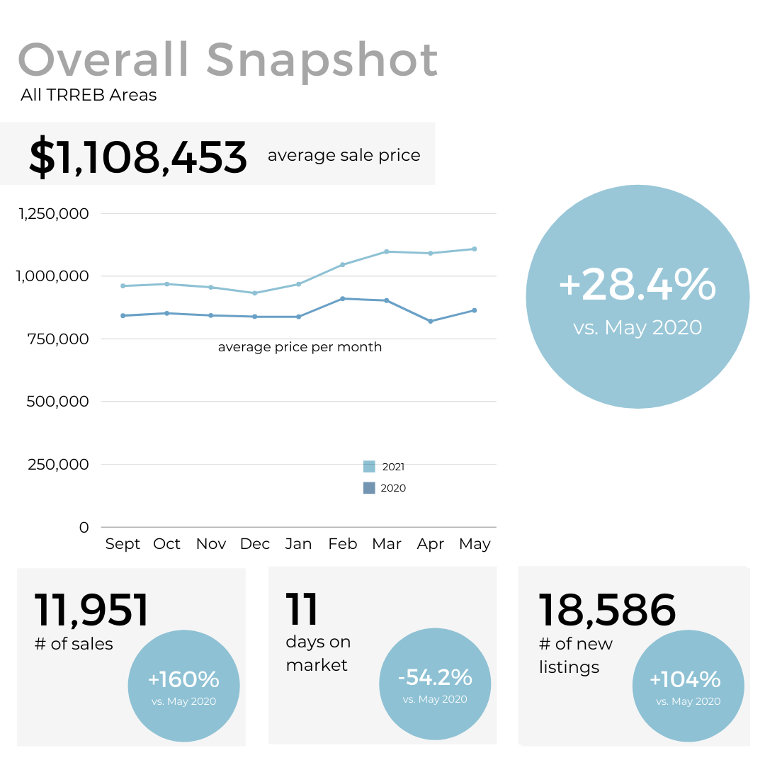 May 2021 reported the 2nd best May numbers in terms of sales volume and the highest ever average price in the history of the Toronto Regional Real Estate Board.