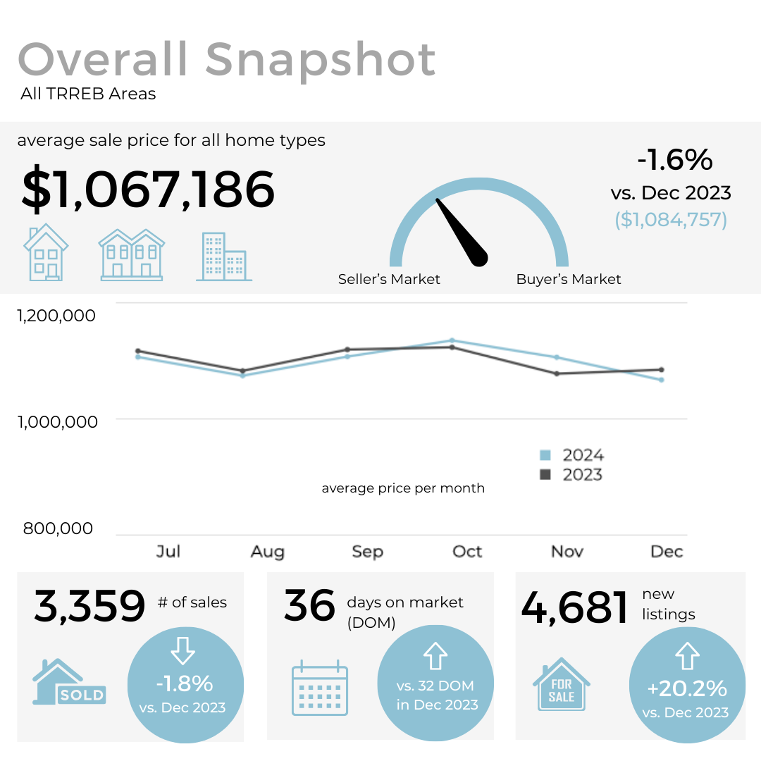 The Toronto real estate market wrapped up 2024 with some big changes, as active listings continued to rise. What impact did this have on prices? Are further price drops on the horizon?