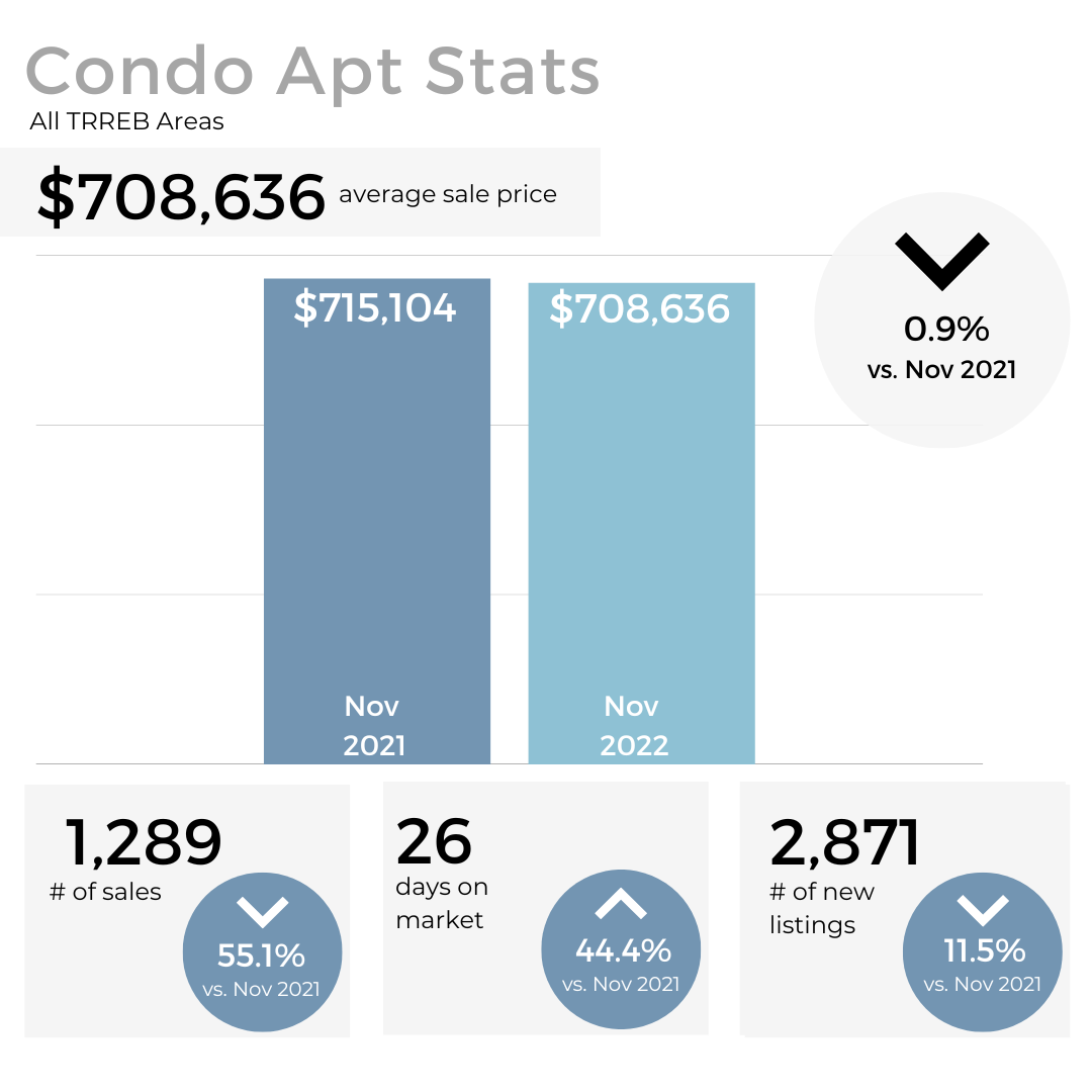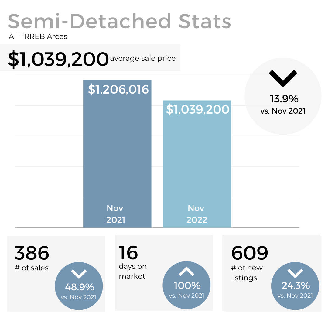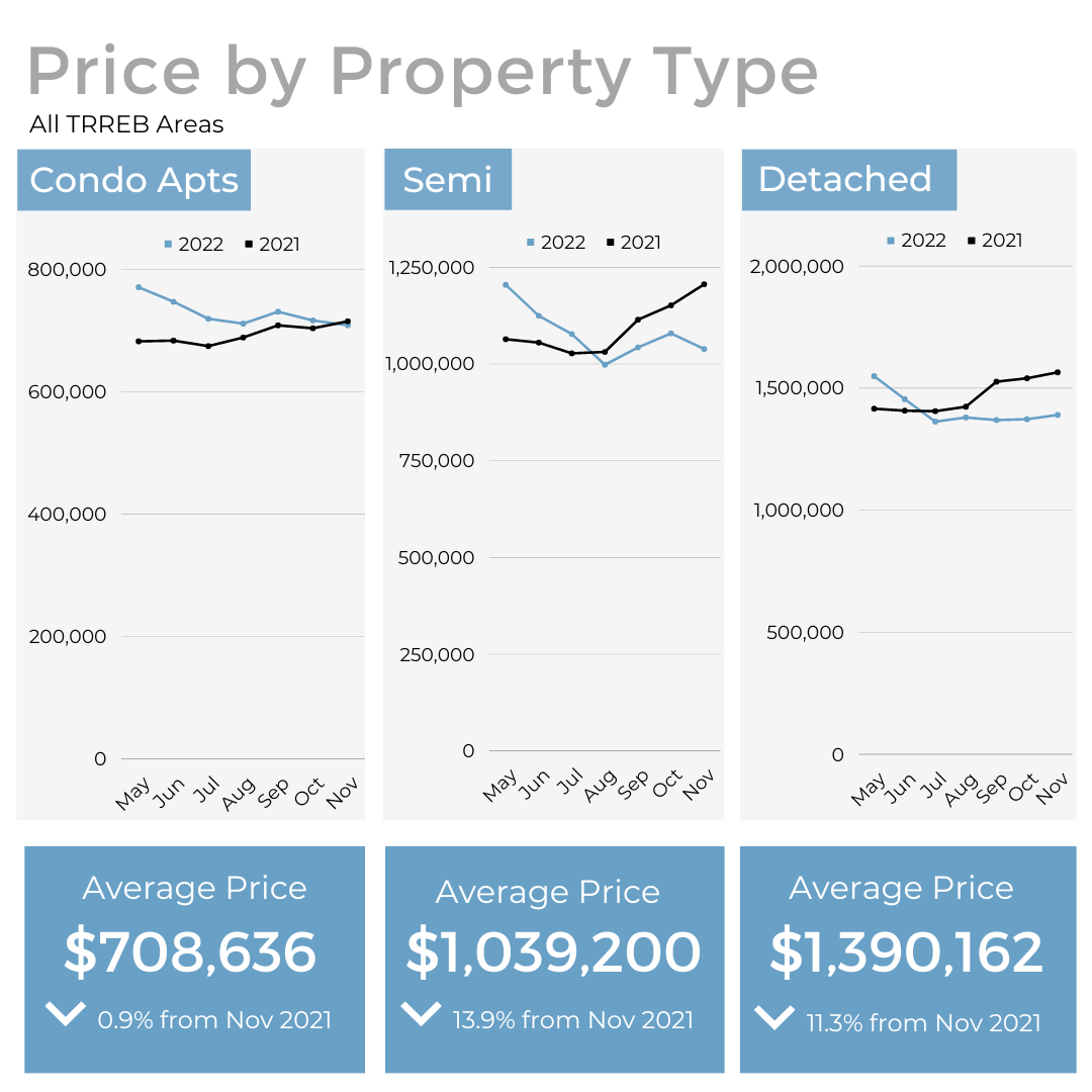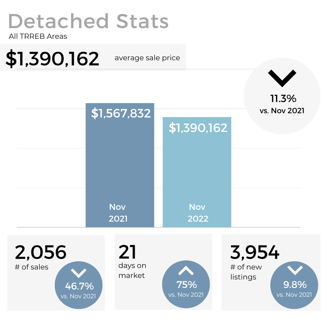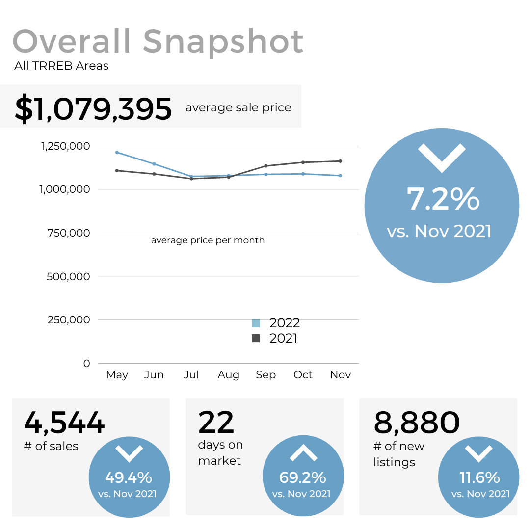 We continued to see a decrease in sales volume as well as the average price of GTA homes in November, which is typical coming out of the fall market and into the winter months. However, the decrease was much less significant than in previous years pointing to signs that the market may have stabilized.