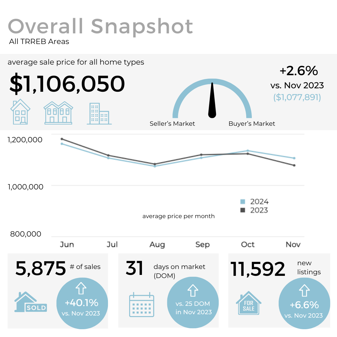 The Toronto real estate market showed positive signs in November, with a 40% increase in sales volume compared to October. This boost may be tied to buyers responding to the upcoming mortgage rules taking effect in December.