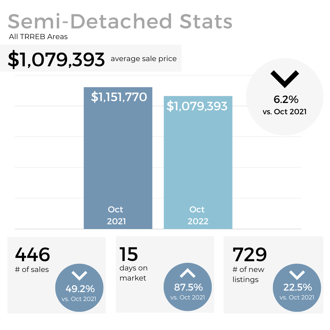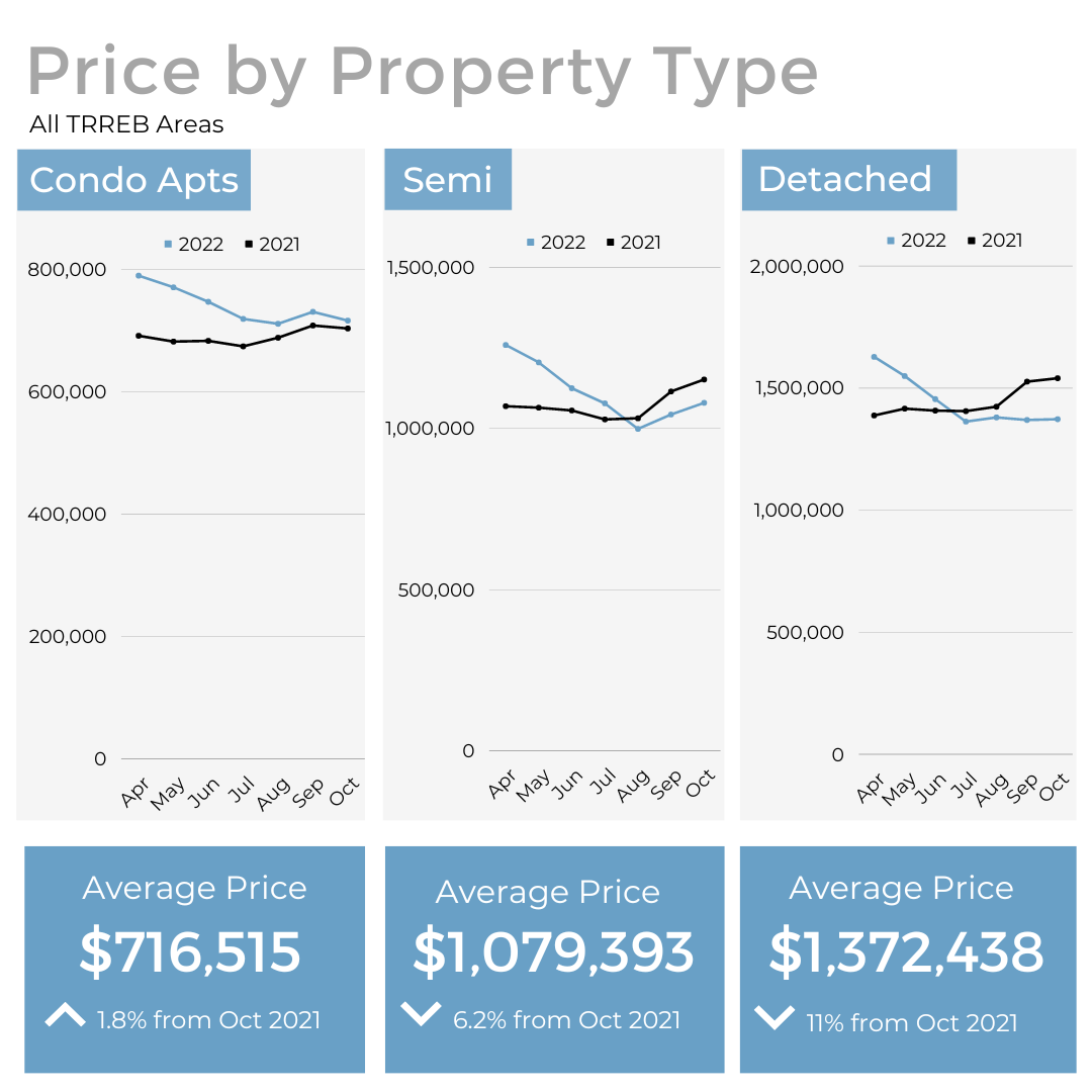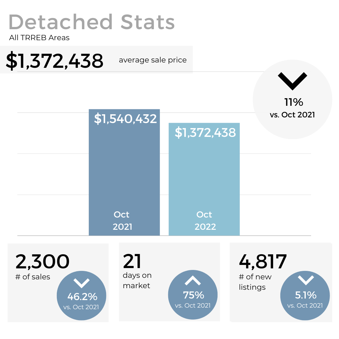 Sales volume and average prices for homes in the GTA were down year-over-year in October, however, when looking at the trends over the past few months there are encouraging signs that the market may be stabilizing.
