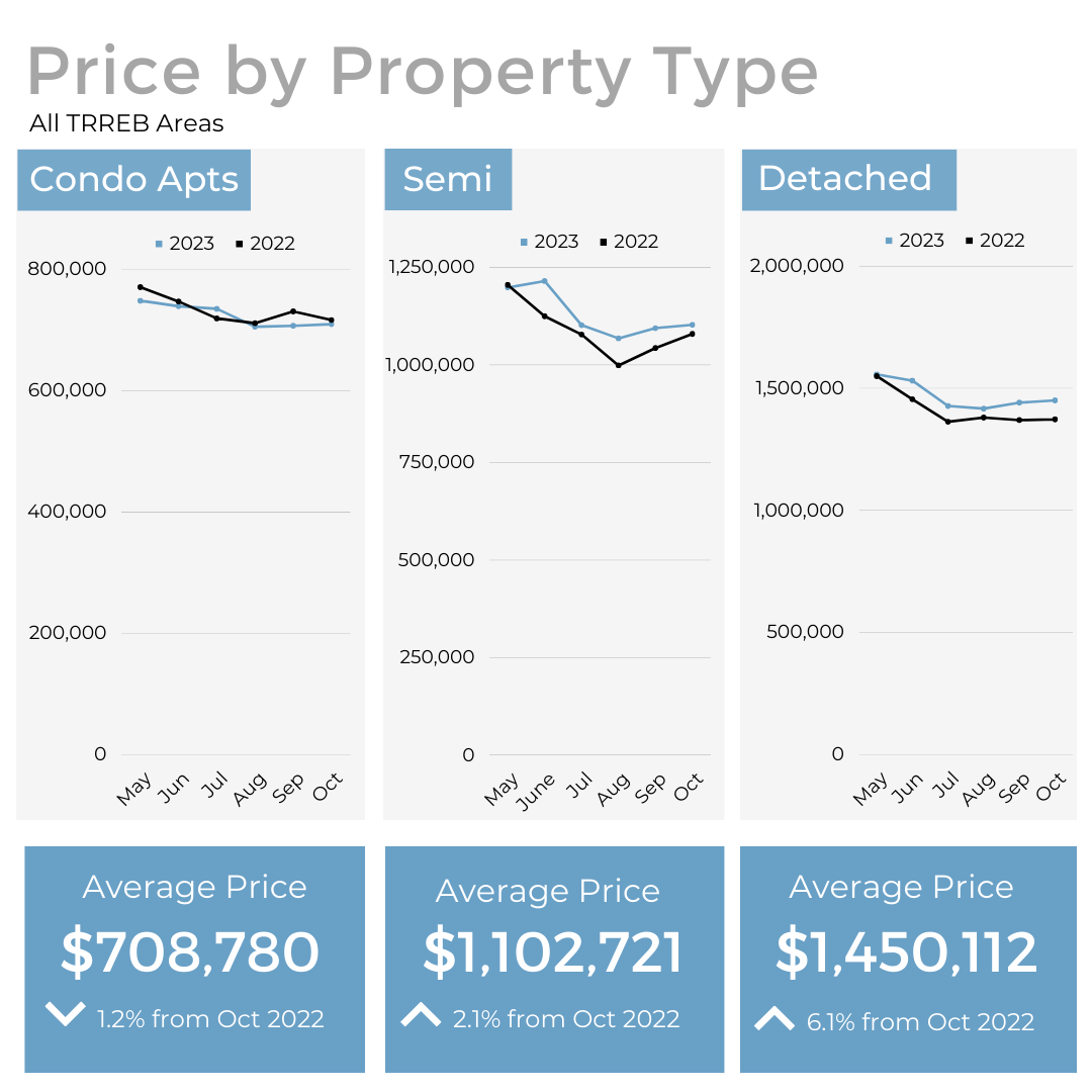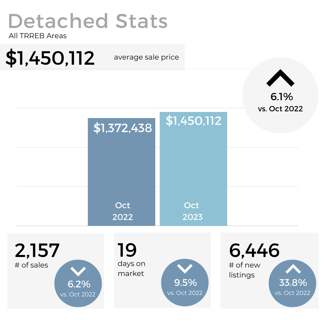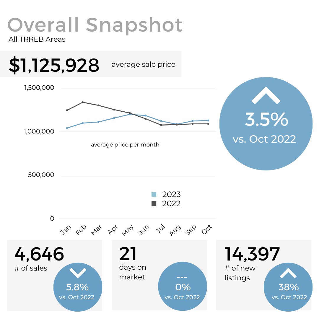 Affordability challenges and uncertainty persisted among GTA homebuyers last month, resulting in a decrease in total sales compared to October 2022. Despite this, selling prices continued to slightly exceed levels from the same period in the prior year.