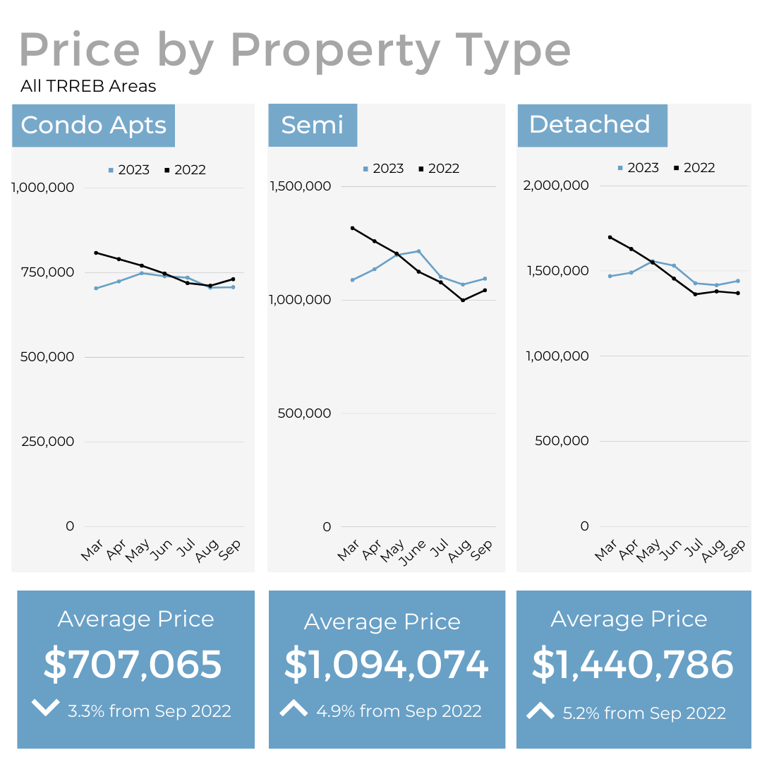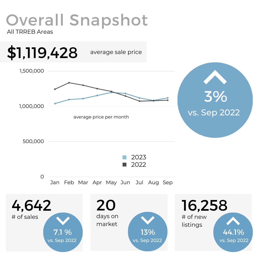 High borrowing costs, inflation, and economic uncertainty continued to affect GTA home sales last month, but despite increased listing supply, the average selling price rose year-over-year.