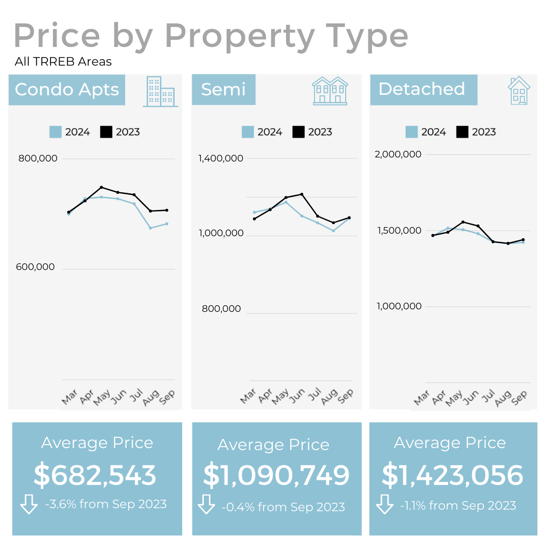 The average selling price in September was $1,107,291, slightly down from last year’s $1,118,215. However, the price adjustments are particularly benefiting buyers in more affordable segments like condominiums and townhouses.