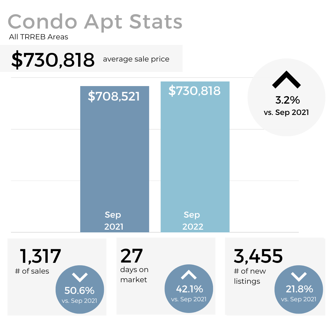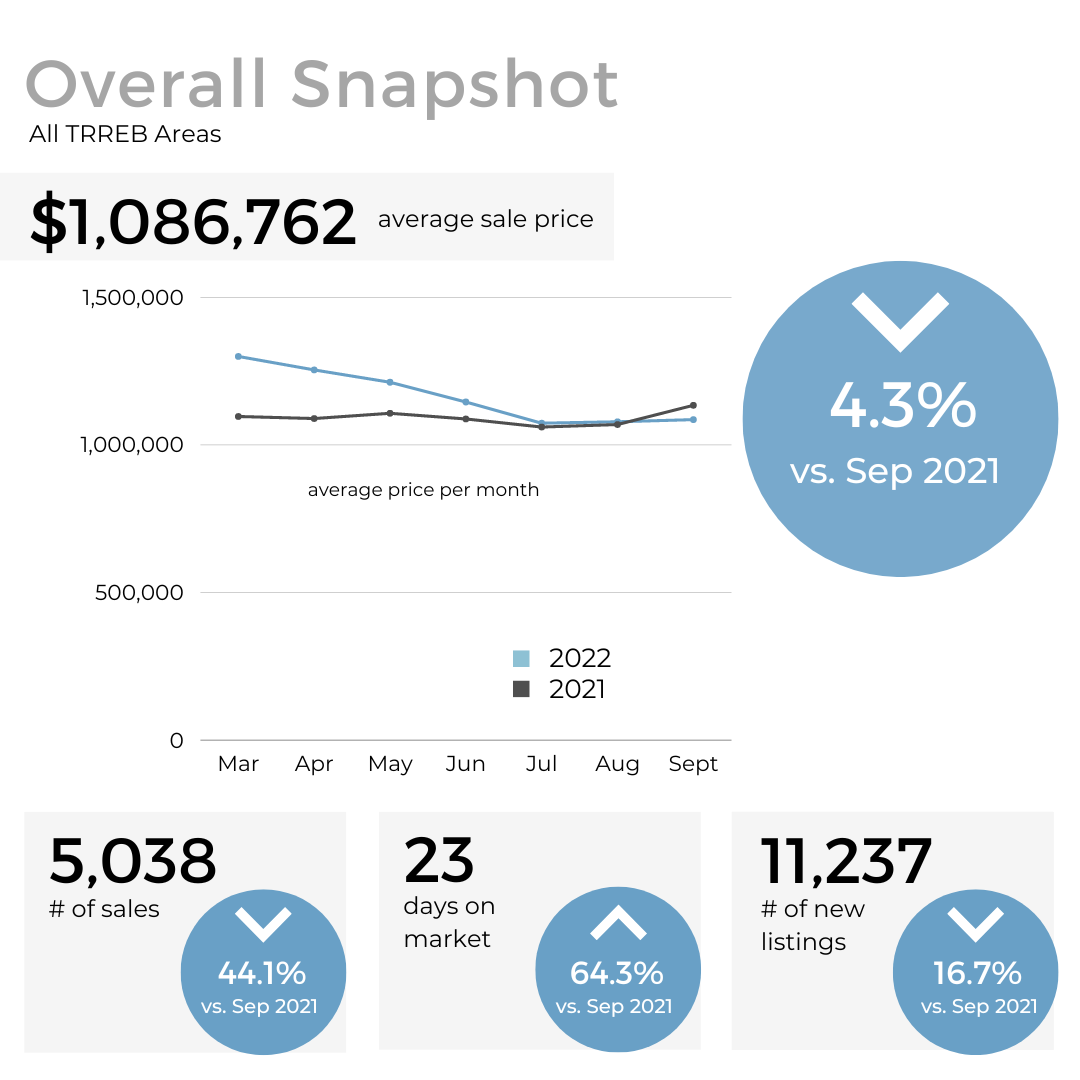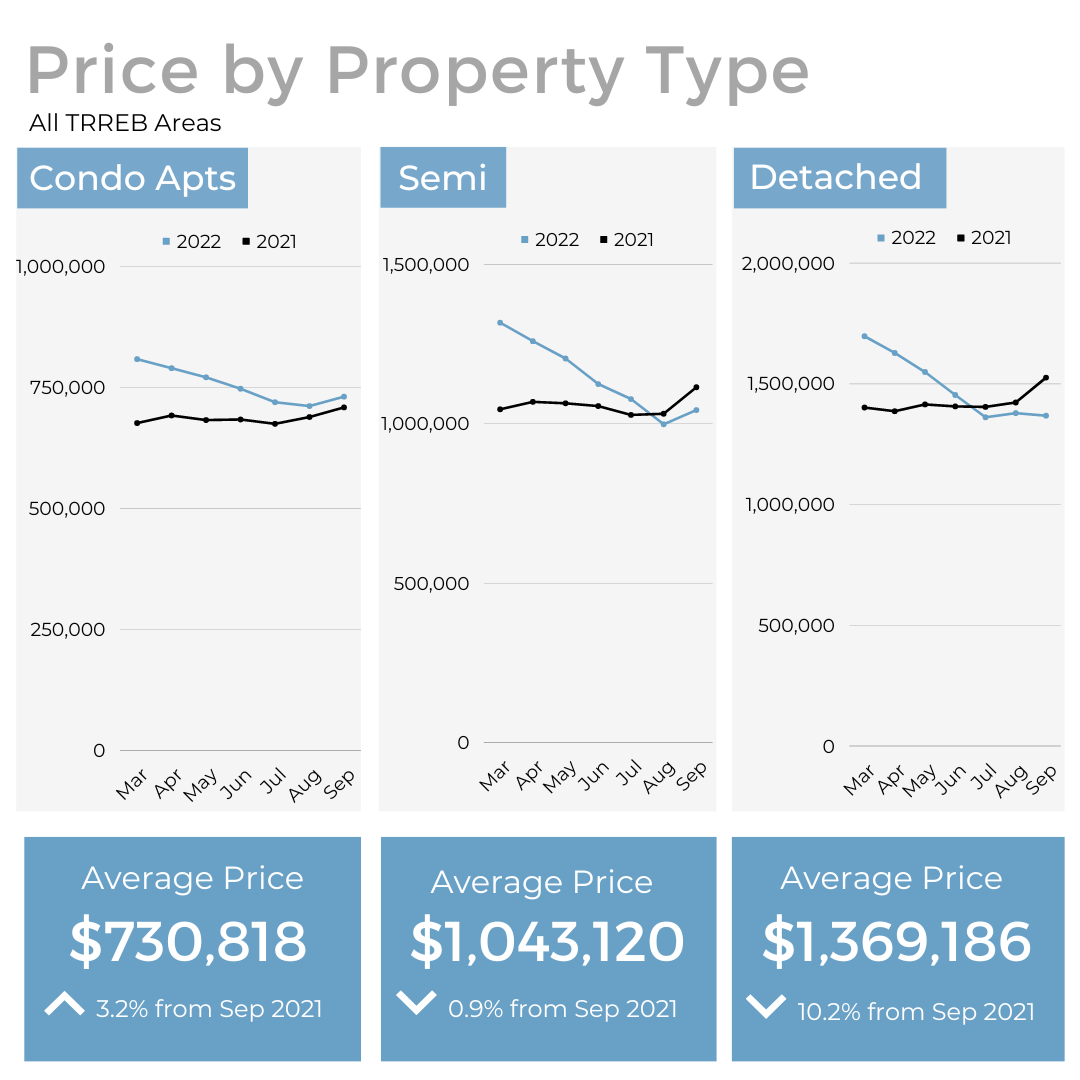 September 2022 marked the first decline in home prices since the slide began last winter, as the average price of a Toronto home decreased by 4.3 percent. However, when looking at the average price month-over-month we have seen a slight uptick since July. This may suggest that we are starting to see the market flatten.